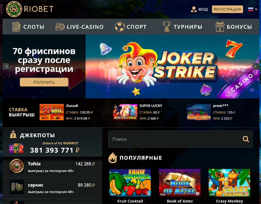 Запущенный в 2014 году игровой клуб сразу получил положительный отклик от игроков из России и Украины, страны бывшего Союза и Югославии. Казино «Риобет» отличается адаптивным дизайном, многофункциональным наполнением, высокой безопасностью.